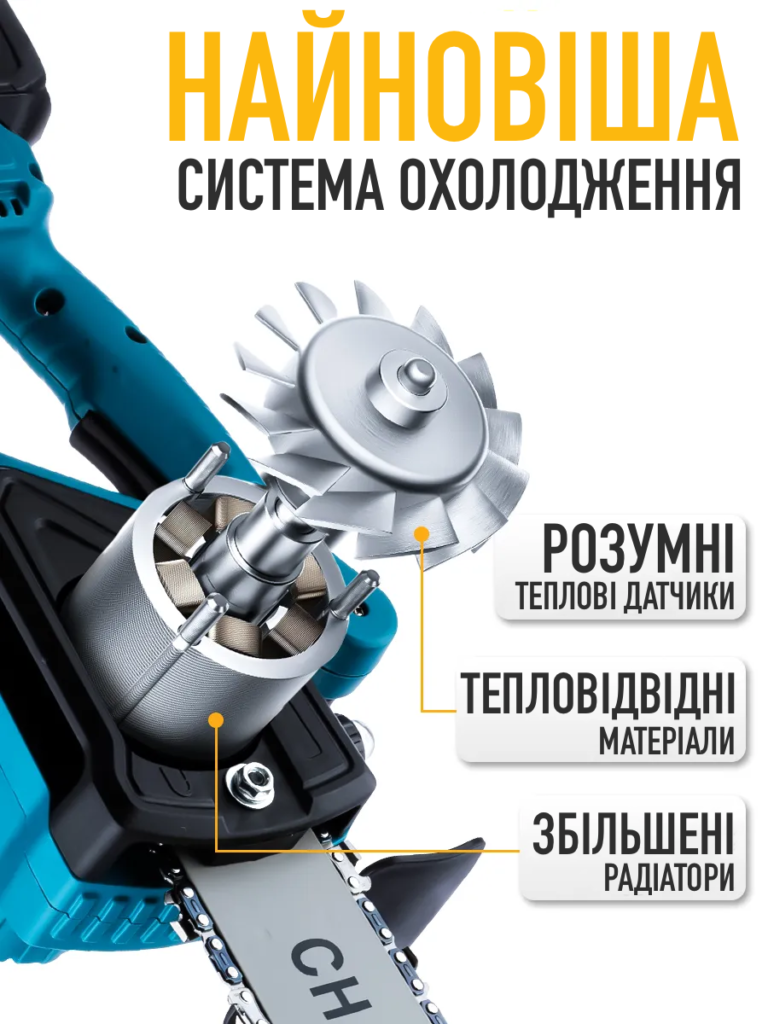 Ланцюгова пила з 2 акумуляторами 6.0 Ah працює зі швидкістю 8500 об/хв, що забезпечує високу продуктивність. У комплекті йдуть ланцюг та шина 30 см для точного й швидкого розпилу. Автоматична подача оливи зменшує знос і підтримує ефективність роботи. Набір інструментів на 46 елементів – у подарунок.